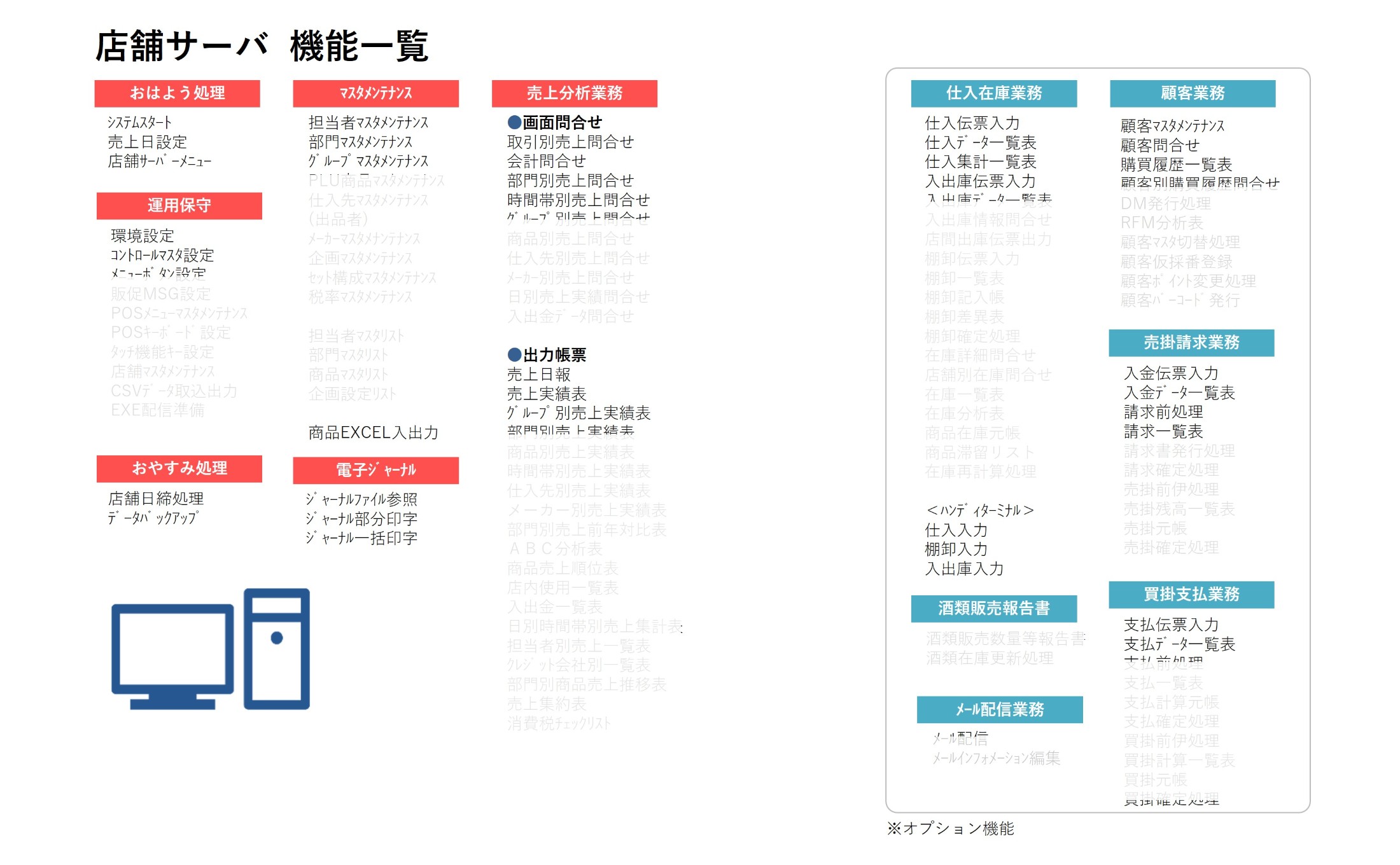 ・経営管理: 小売業の根幹となる売上管理、在庫管理、顧客管理の機能が凝縮されています。