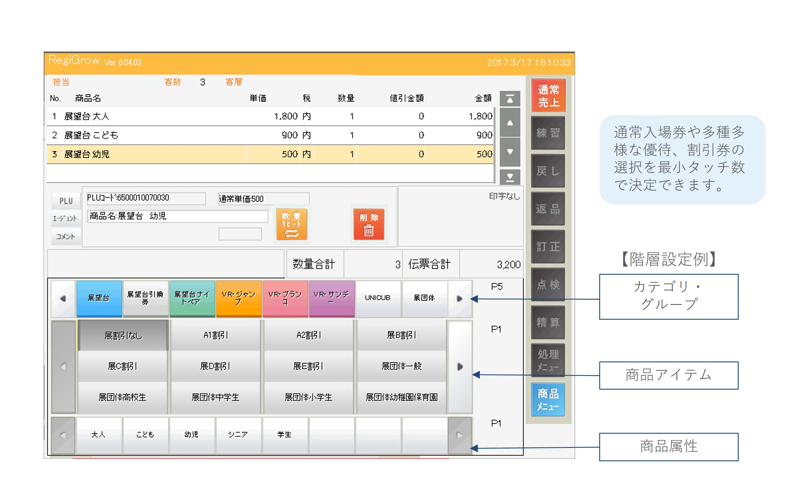 ・第1階層ボタンには、券種カテゴリ・グループ・発券場所などを任意に設定可能